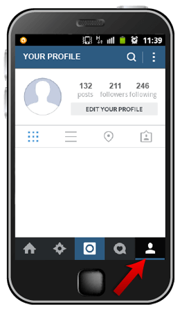 ![]() | Log in to your Instagram account. Go to your profile by tapping the Profile button. |